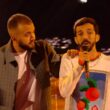 Takeoff tend la chaîne autour de son cou à gauche, tandis que Quavo se tient à ses côtés et sort un ‘A’ à l’envers, qui est le signe de la main d’Atlanta.